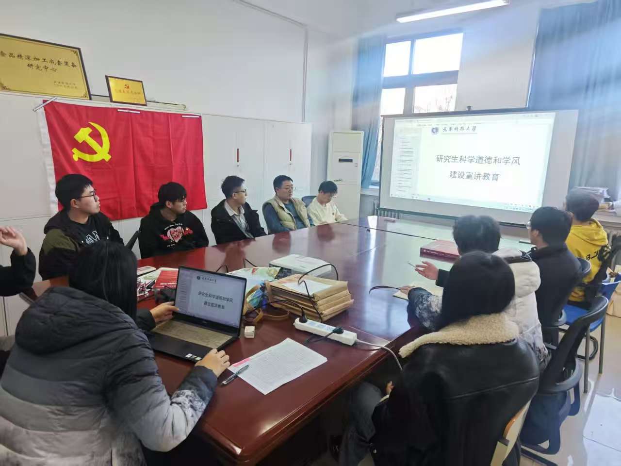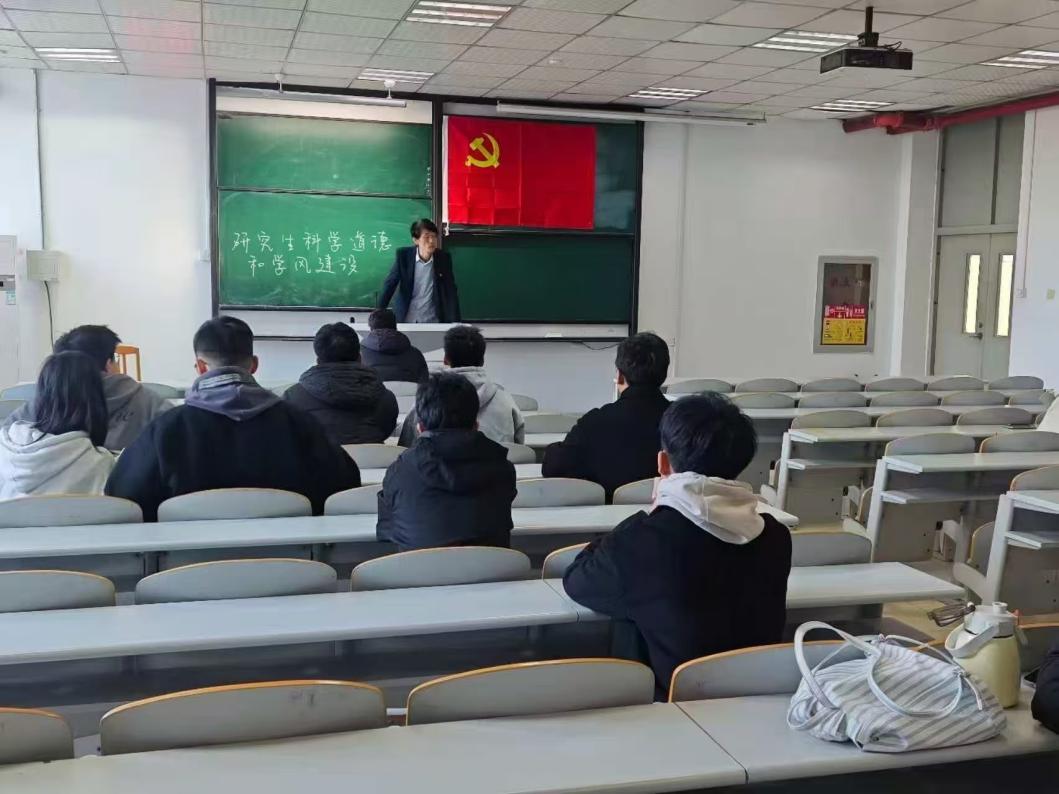各研究生党支部严格落实规定教育项目要求,组织支部成员集中收看全国和天津市科学道德和学风建设宣讲教育报告会,认真聆听知网专家吕开全所作的《解读学术规范 加强学风建设 提升科研质量》专题讲座,深入学习《2025年研究生科学道德和学风建设宣讲教育文件选编》等重要材料。围绕科学家精神、学术诚信规范、科技伦理要求等核心内容,支部通过“线上知识竞答+线下专题研讨”相结合的方式,组织研究生开展热烈交流,分享学习心得,强化对学术不端行为的防范意识。同时,邀请学院“十佳学术之星”、国家奖学金获得者及优秀导师代表分享科研攻关经历与学术成长故事,传递严谨求实的治学态度和潜心钻研的奉献精神。