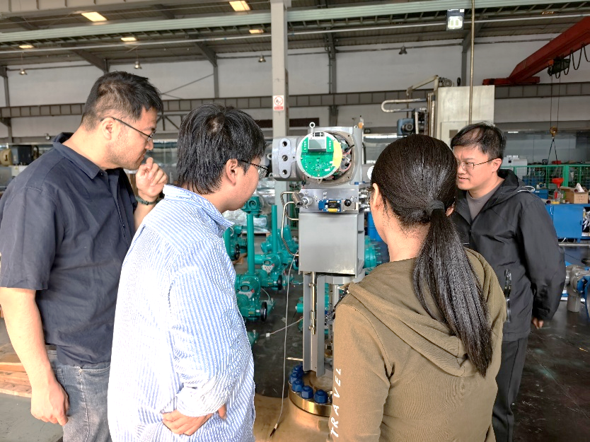 Accompanied by Chairman Zhuo, the faculty and students conducted an in-depth tour of the company's intelligent production workshop, product testing center, and R&D laboratory. During the visit, both parties engaged in practical discussions on cutting-edge industry technologies, focusing on key topics such as breakthroughs in critical processes for high-precision control valves and optimization of product reliability. Notably, in the exhibition area of the company's newly launched fifth-generation intelligent control valves, technical staff and the visiting faculty and students held fruitful in-depth exchanges on innovative approaches, including material performance upgrades and control algorithm iterations.