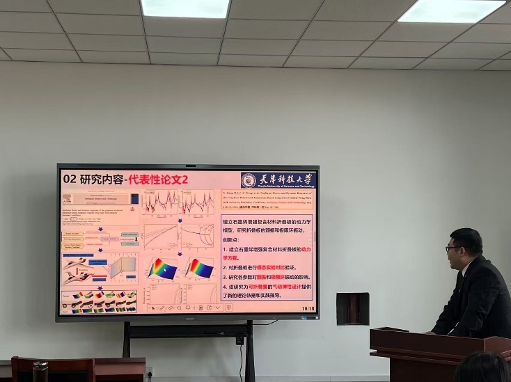 在基础理论与动力学控制方面,李晗博士作了题为《复合材料板壳结构的非线性振动与控制研究》的报告。他深入解析了复合材料板壳结构的动力学特性与非线性振动规律,展示了最新的控制技术研究进展,为工程结构的稳定性优化提供了坚实的理论支撑。