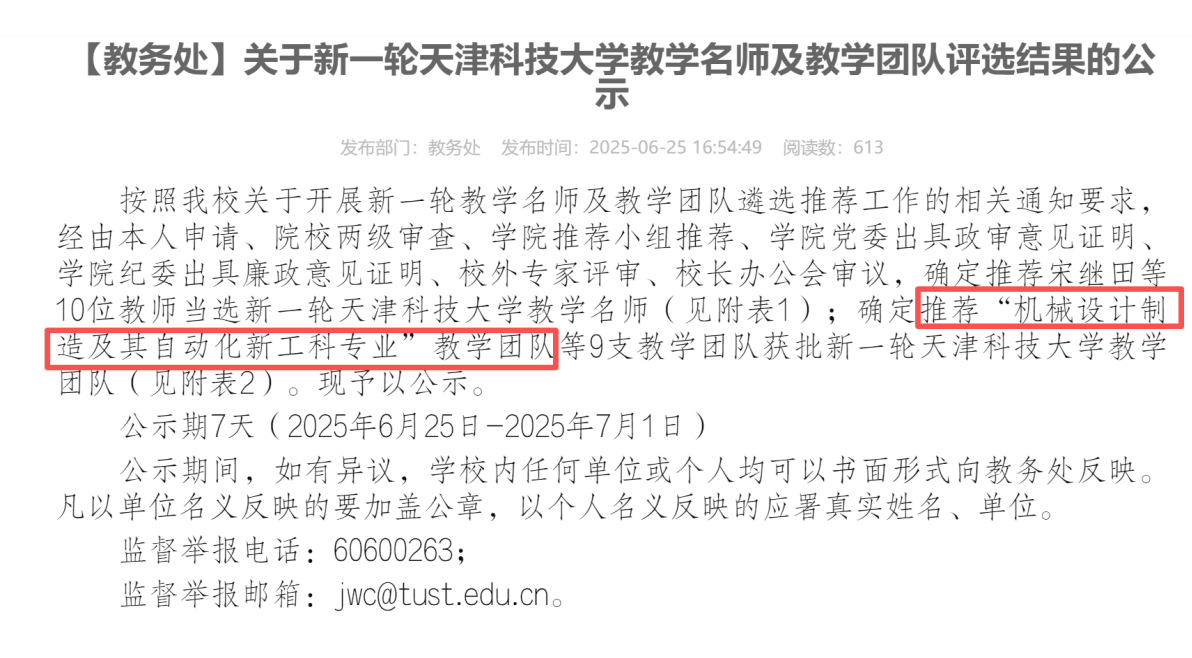 同年前期,伟德国际victor·1946源自机械设计制造及其自动化系获评“2025年伟德国际1946先进集体”,并在教学建设评选工作中,机械设计制造及其自动化新工科专业教学团队(负责人李文辉)获批新一轮“伟德国际1946教学团队”。