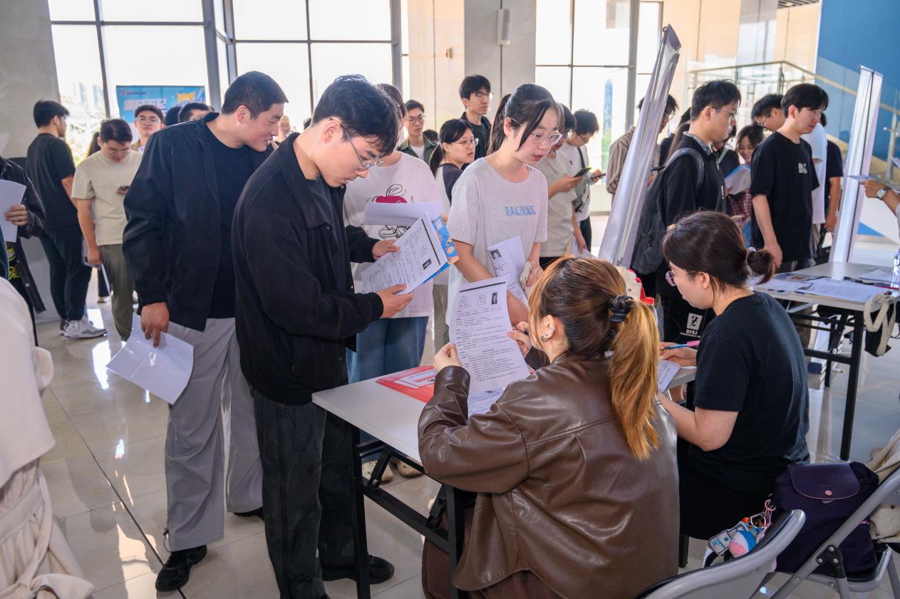 此次招聘会共计百余名毕业生参加,现场热闹非凡,学子们积极投递简历,踊跃参与面试;企业们认真介绍招聘计划,与学生们进行细致沟通;老师们认真组织现场,保障招聘会顺利进行。