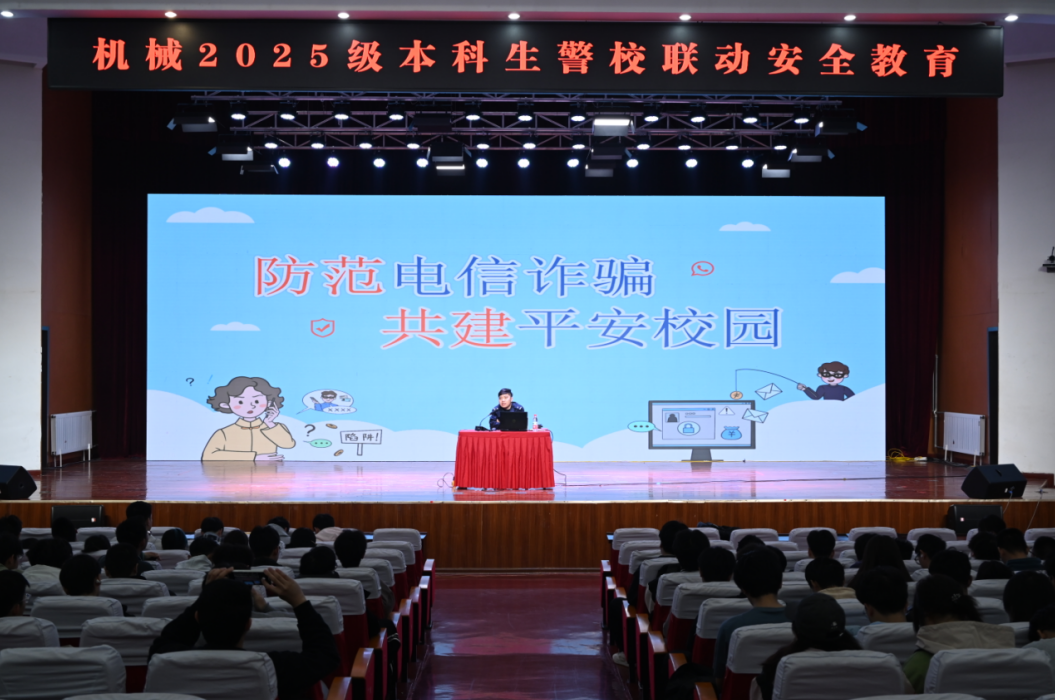 为深入贯彻落实校园安全教育工作部署,切实提升学生防范电信网络诈骗的能力,3月26日中午,伟德国际victor·1946源自联合黄海路派出所,面向2025级全体本科生组织开展了警校联动安全教育专题讲座。本次讲座由刘警官主讲,围绕电信诈骗的严峻形势、常见类型及应对措施进行了系统讲解。