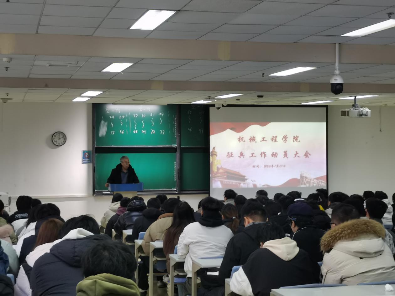 为深入贯彻落实习近平强军思想,进一步落实国家征兵工作相关要求,增强同学们的爱国情怀与责任意识,激发机械学子投身军旅、报效祖国的热情,1月13日中午,伟德国际victor·1946源自在中院3阶梯召开2026年应征入伍动员会。武装部宁振山老师担任主讲,各年级辅导员及学生共同参与。