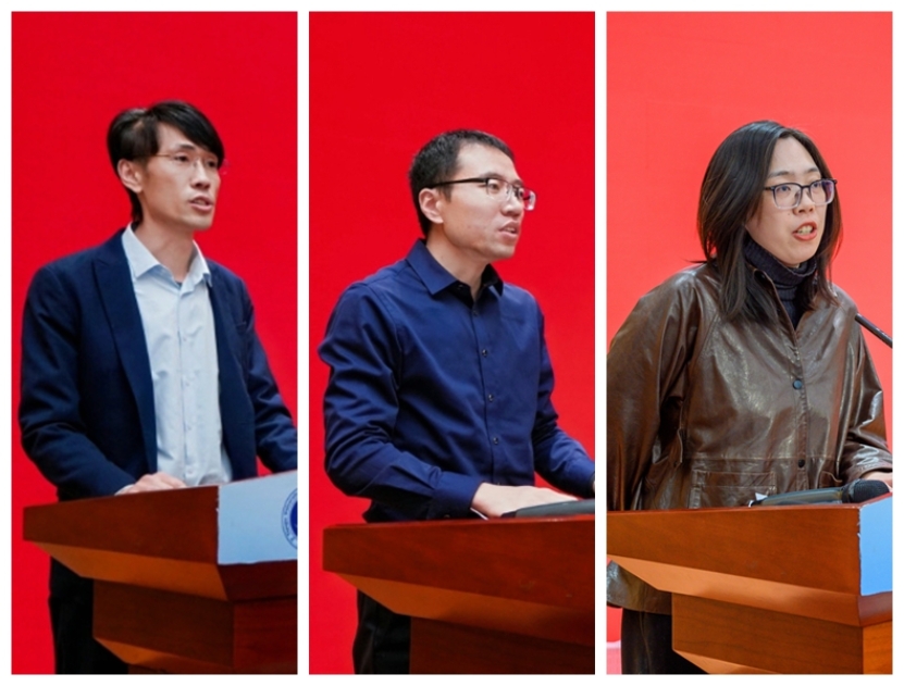 在青年代表交流环节,科研突出代表王岩老师、教学突出代表房德磊老师以及新入职青年教师代表朱雯婷老师分别发表感言。他们结合个人经历与岗位实践,分享了在科研攻关、教学创新和融入学院团队中的体会与收获,表达了对学院培养关怀与平台支撑的感谢,以及立足岗位、接续奋斗的信心与决心。